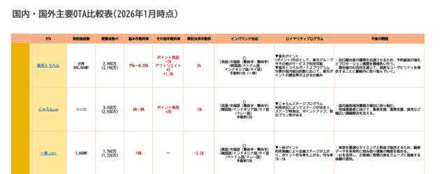 代表的な国内OTA、海外OTAの特徴と手数料一覧