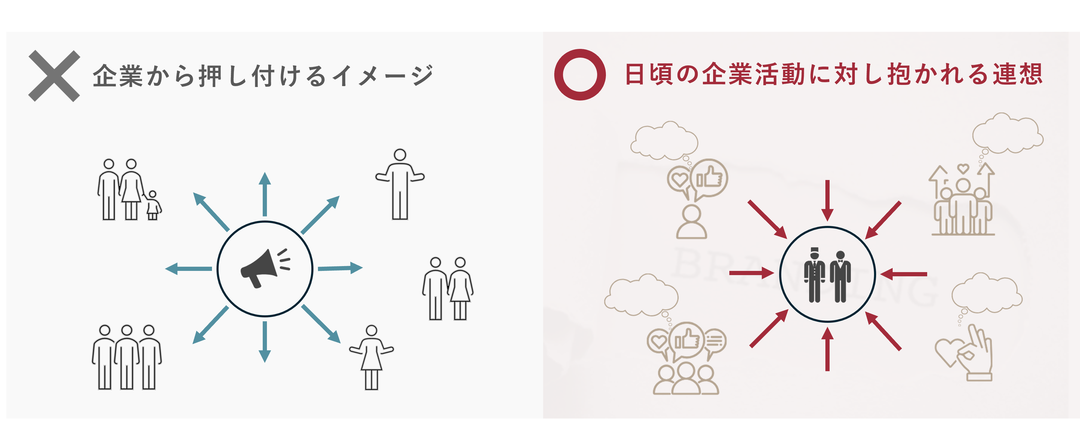 これが意味するのは、『ブランド』は企業が一方的に押し付けるものではなく、日頃の企業活動に対して消費者が連想、伝言していくもので、消費者一人一人の頭の中に“それぞれのブランド像”として存在している事実です。つまり、企業が伝えたい内容がブランドの連想になるわけではないということです。